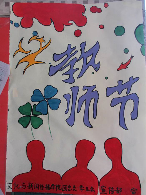 本网讯(学生记者 章玉)“晨曦细雨育桃李,老师,辛苦了!金秋硕果慰园丁,老师,感谢您!”2012年9月10日,我们共同迎来了阳光下最光辉职业的第28个节日。清晨,文化与新闻传播学院的学生们便通过多种形式向教师们表达深深的感恩与祝福。