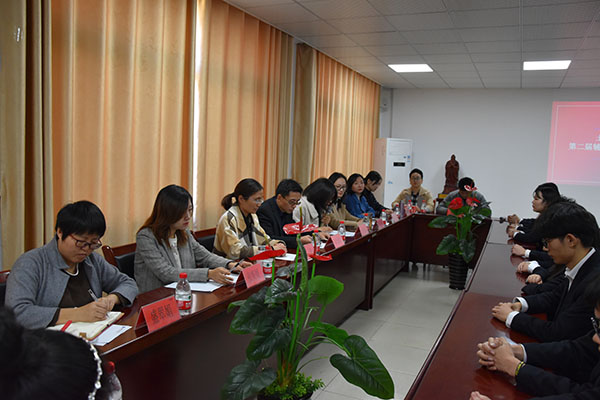 辅导员助理代表刘忠旺发言,表明荣幸担任辅导员助理岗位,尽职尽责做好工作。辅导员代表王菁发言,指出助理是日常工作中的重要助手,并希望在以后的工作中共同学习,共同成长!