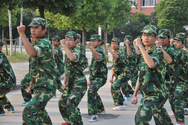 军姿、齐步、正步、方阵是每天必备课程,不管骄阳似火还是风吹雨打,他们始终都在操场上坚持如一。20多天的训练效果明显。军训场地上,口号声似雷鸣,阵阵响彻华园;动作整齐,集万人如一人行;歌声嘹亮,气吞山河。严明的纪律,严格的要求,紧张的节奏,辛苦的训练,使得每一个参加军训的学生从暑假里松散的生活方式转向有规律、有强度的军训之中,也使他们真正体会到何为“军人”。