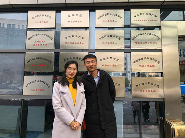 安徽迪科数金科技有限公司是天源迪科集团服务于金融领域的重要窗口,利用大数据和人工智能应用技术为金融机构提供信贷风控的技术、产品、运营及整体解决方案。凭借多年服务于银行、互金等金融机构的优势,以及超强的大数据处理和建模能力,为金融行业客户提供金融产品服务全生命周期应用。任俊杰是我院2016届财务管理毕业生,在该公司已踏实工作近四年,事业家庭双丰收,目前担任公司项目主管兼运营主管一职。任俊杰及其同事带着老师们参观了公司园区,介绍了他的工作环境,企业文化等。