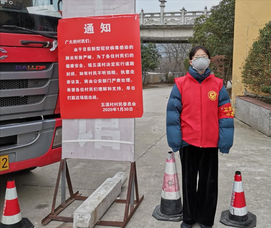 外国语学院党总支学生第二支部预备党员徐海霞,在家中一直在密切关注着新冠疫情的发展态势。当她了解到自家所在的池州市青阳县蓉城镇五溪村,正在招募志愿者进行轮班站岗时,作为一名大学生党员,她主动请缨走上“抗疫”前线。在疫情最严峻的一周里,徐海霞顶着刺骨寒风,向村民宣讲新冠肺炎的最新防治知识,与其他志愿者交班站岗巡逻,对往来人员进行体温测量及消毒工作。