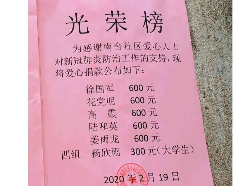 杨欣雨,是安徽新华学院药学院2019级健康服务与管理本一班的班长,同时也是一名优秀的共青团员。在疫情期间,她不仅做了一名防疫志愿者,还捐献出了自己的压岁钱。她表示:“虽然我还没有经济收入,但刚刚过完年,压岁钱还是有的,虽然捐献的不多,但我希望可以帮助更多的人,希望国家早日战胜疫情!”