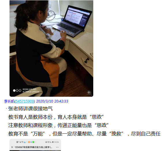 教师们积极开展心得交流,并学以致用。如借助网络平台不受时空限制、方便传递信息和交流的特点,来弥补网络教学缺少课堂教学的面对面互动和对学生表现出的困惑作出的即时回应;可以充分利用不同平台的“群聊和私聊”功能,加强与学生的交流和沟通、以及个别辅导;同时需要以学生为中心,鼓励学生提出讨论题,这样才能让学生“活”起来。