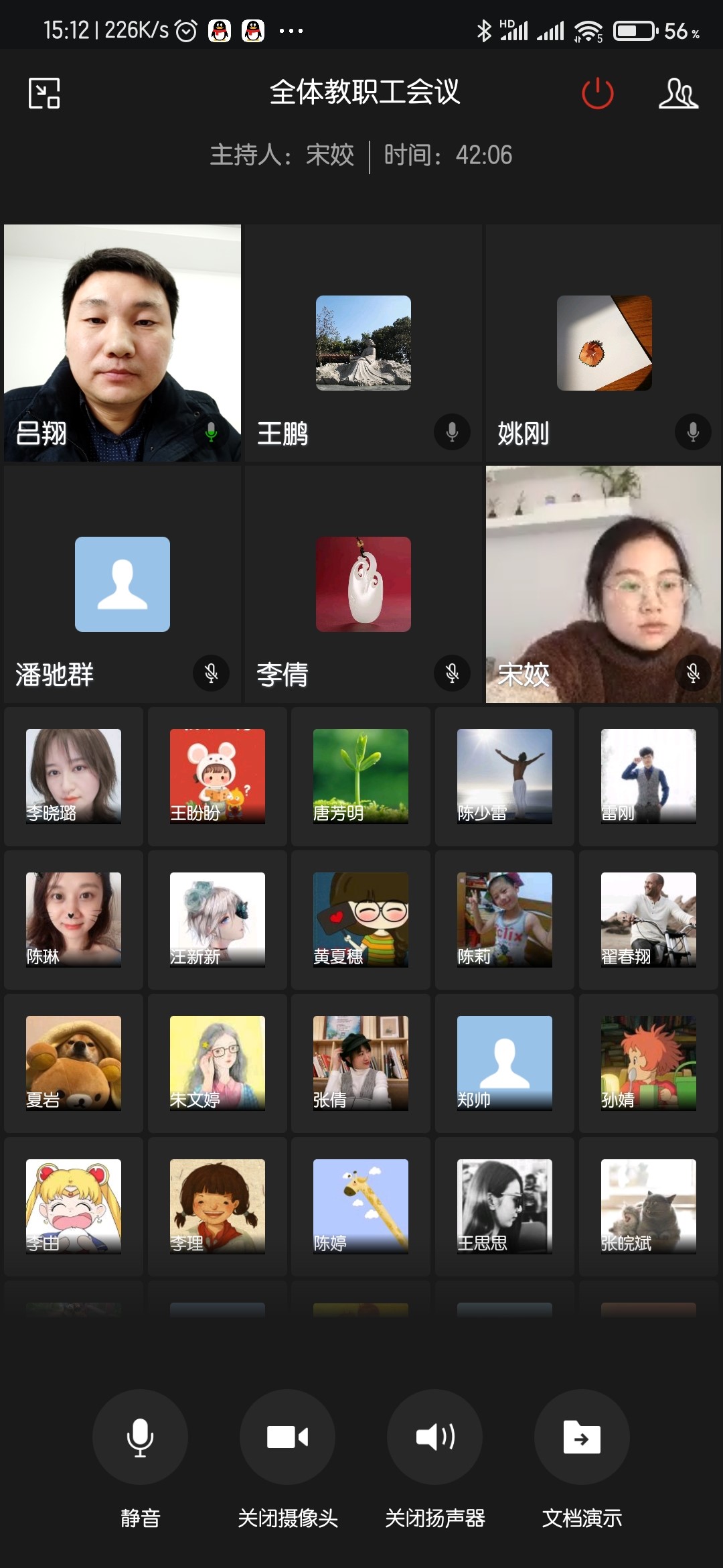 最后,吕翔做总结发言。他首先肯定了前期线上教学工作取得的成绩,对于第二批即将上线的课程务必要重视,制定好教学预案,灵活选择适合自己的教学平台和方式,全体教师应抓住这次机遇,推进学院网课建设,积累经验。接着,他对毕业生就业工作做出要求,积极与校企合作单位沟通,运用好优秀校友资源,为2020届毕业生提供更多的就业岗位。最后他表示当前防疫工作要继续推进不放松,提醒教职工严格按要求做好日常防护,注意个人安全;同时也要求辅导员加强学生的关注和联系,确保学生居家安全。为后期的全面开学提供保障。