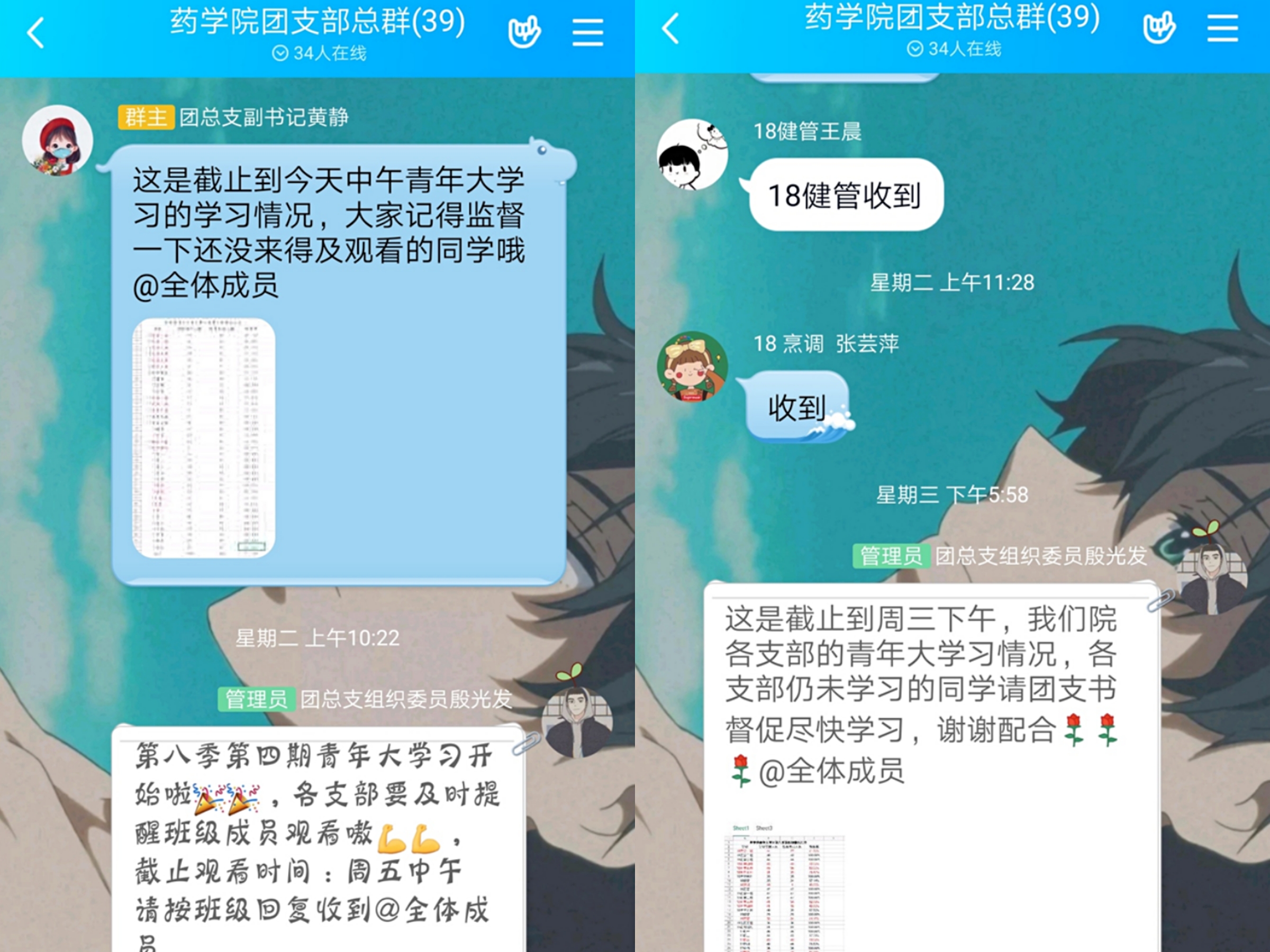 为提高学习观看率,我院团总支积极向校团委反应相关问题并采取有效措施。同时,领导和老师高度重视青年大学习的学习情况,各班辅导员也强调观看青年大学习的重要性。针对药学院部分同学团员意识比较薄弱,对于组织安排的工作与任务存在自由散漫、匆忙应对的态度的问题上,在汲取诸多完成情况良好的其他团总支的建议后,我院团总支采取的措施。每周一青年大学习开始时,团总支立即通知各班的团支书,由团支书通知并监管本支部同学学习情况。每周三,药学院团总支发布截止至周三本院各班学习情况,在绘制成表格后,标红出学习情况不理想的班级,由对应各支部的团总支组织部干事进行督促。目前处于疫情防控的关键时期,我院遵循“停课不停学”的同时,网上主题团课学习工作也将一直紧抓不放。