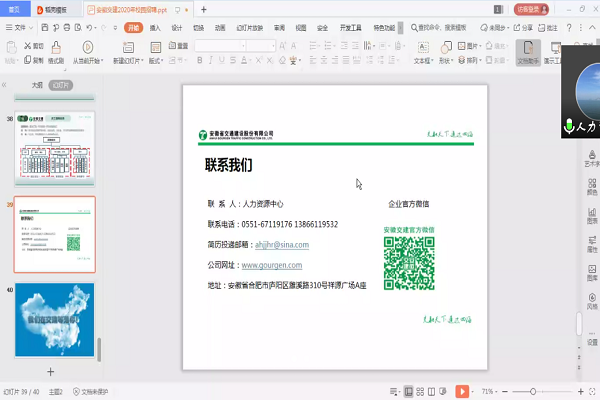 安徽省交通建设股份有限公司,公司人力资源部负责人沈艳军向学生系统介绍公司发展历程、业务领域、人才需求、福利待遇以及人才培养等。并强调公司坚持公平、公正、公开的原则,奖励努力进取的优秀员工。现急需土木工程、安全工程、给排水、工程造价、工程管理类优秀毕业生。在线上互动环节,辅导员代表王菁就毕业生最关心的福利待遇、工作地、女生就业等问题与公司负责人进行了现场交流。