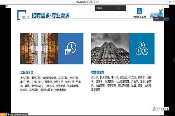 中建五局安徽分公司是世界500强中国建筑集团的全资子公司中建五局下属的直营公司。会上,人事招聘主管何振向毕业生展示了公司发展历程、业务领域及完成的重点项目。重点就目前人才培养体系、制度保障进行全面介绍。介绍了应届毕业生工作的福利待遇等情况。公司强调坚持以人为本、价值创造、关注个体、科学发展的人才培养理念,能使员工在实践中不断提升自己。他表示,非常期待我校毕业生能够加入公司的大家庭。