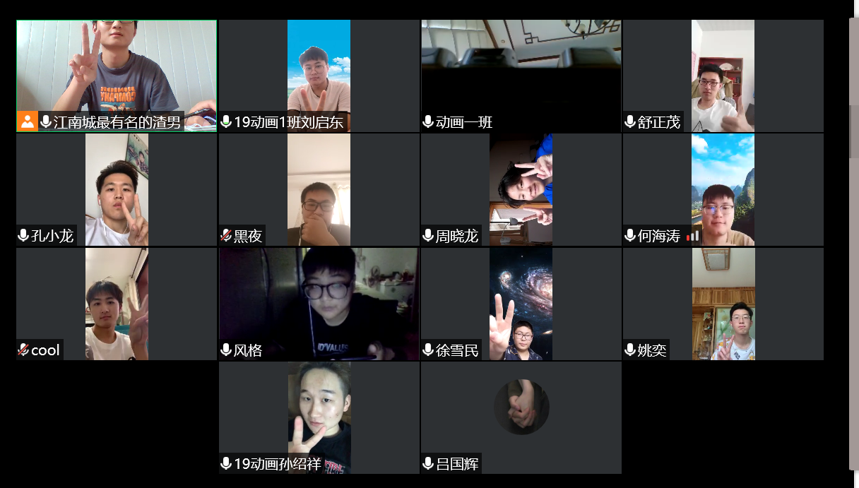 此次活动覆盖艺术学院所有非毕业班学生,辅导员助理们利用新媒体搭建平台,把寝室搬到云端,以“云端寝室”为载体,围绕同学们关心的话题,如“疫情期间我做的最有趣的事”、“我听过最感人的故事”“线上教学期间我的学习状况”、“在家与父母的关系如何”“线上班级活动感觉如何”、“开学后最想做的事”、“最想见的人”开展卧谈会。同学们“抗疫”宅家,数月未见,新颖的方式,吸引同学们积极参加。2018级环境设计2班的李言同学表示建立“云端寝室”,开展“云端”卧谈是辅导员助理带领同学们做的一次新颖的尝试和体验,伴随着同学们的各种分享,让一开始面对面的相顾无言,变成相谈盛欢,让大家十分期待线下相见的那天。2019级艺术与科技1班的朱文静同学表示,看到室友们熟悉的面孔,听到室友们熟悉的声音,无拘无束的畅聊着抗疫趣事,想念着华园的美景美食,对即将到来的返校复学激动不已。2019视觉传达1班郭广奇认为卧谈会进一步拉近了同学们彼此的距离,同学们畅所欲言,抒发了各自在疫情期间的感想,也诉说了对彼此的思念,是一次难得的心灵交流的机会。