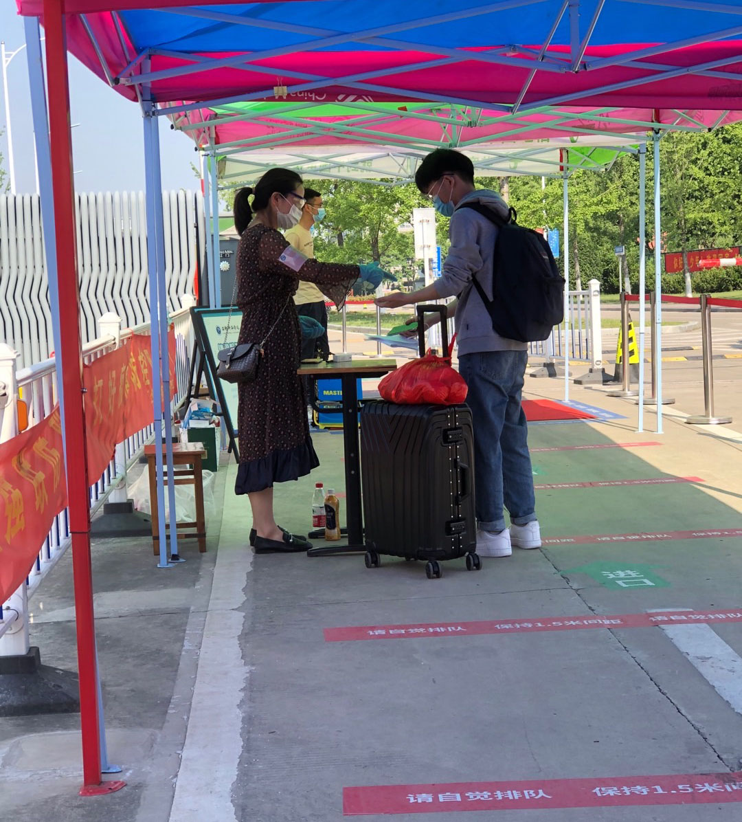 面对疫情,华园学子用自己的行动彰显家国情怀,体现使命担当,有的活跃在家乡镇头村口,有的活跃在社区街道,在返校工作中,同样少不了他们的身影。“同学,你好!”“带好口罩,排好队,保持安全距离!”“喝点水,坐下休息一下吧!”一声声温暖的问候、一项项简单细致的工作,让返校同学第一时间感受到了家的温暖。