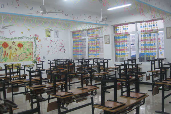 学生们自己动手,崭新的教室内学习氛围浓郁