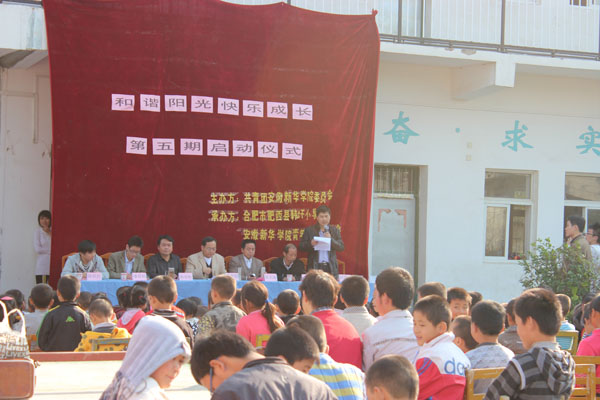 北张学区中心校副书记李本权、新港工业园韩圩村副书记韩先海、韩圩小学校长韩劲松、主任赵德海出席启动仪式。活动开始,赵德海致辞,他对安徽新华学院青年志愿者协会来韩圩小学进行义务支教表示由衷的感谢,他说三下乡义务支教活动本着“和谐阳光,快乐成长”的理念 ,以大学生年轻的心去书写年轻的梦想,响应了“义务教育献爱心,志愿服务传真情”的口号。