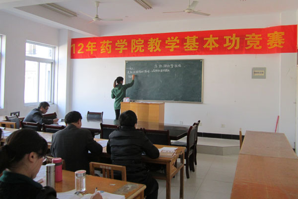 本网讯(通讯员 华芳)为进一步提升药学院青年教师的教学水平,不断提高教学质量,药学院于11月6日成功举办了2012年药学院教学基本功竞赛。该院院长张国升教授,副院长宋美、王飞及系主任担任评委,药学院全体教师参加了竞赛活动。