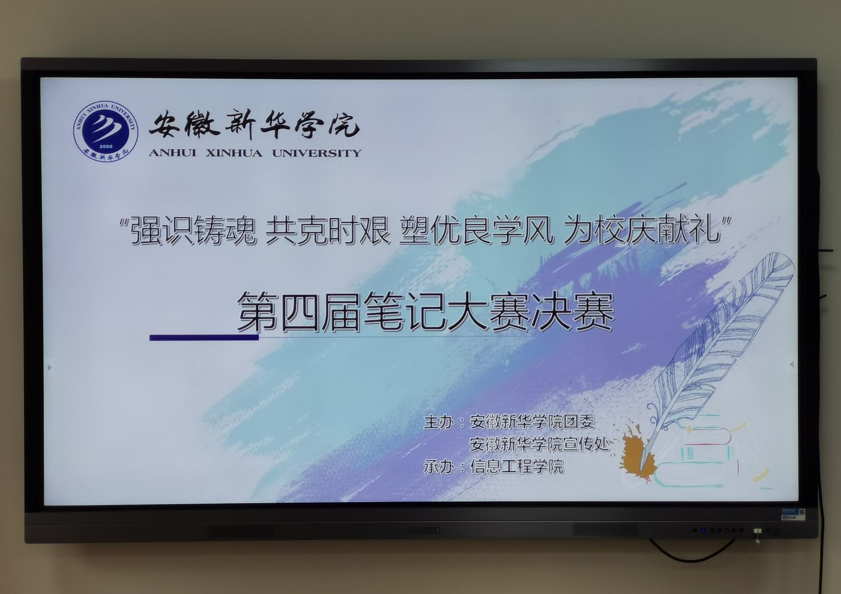 本届笔记大赛由安徽新华学院团委及安徽新华学院宣传处主办,信息工程学院承办,旨在引导学生掌握正确有效地记笔记方法,提高学生课堂听课效率,推动学风建设。笔记大赛于2月17日启动,从前期的宣传征集到后期的评选,历时近五个月,共收到作品400余份,经过初赛、复赛及决赛三个阶段,最终评选出了一等奖3名,二等奖9名,三等奖15名,优秀奖20名,最佳组织奖2名,最佳风采奖1名。