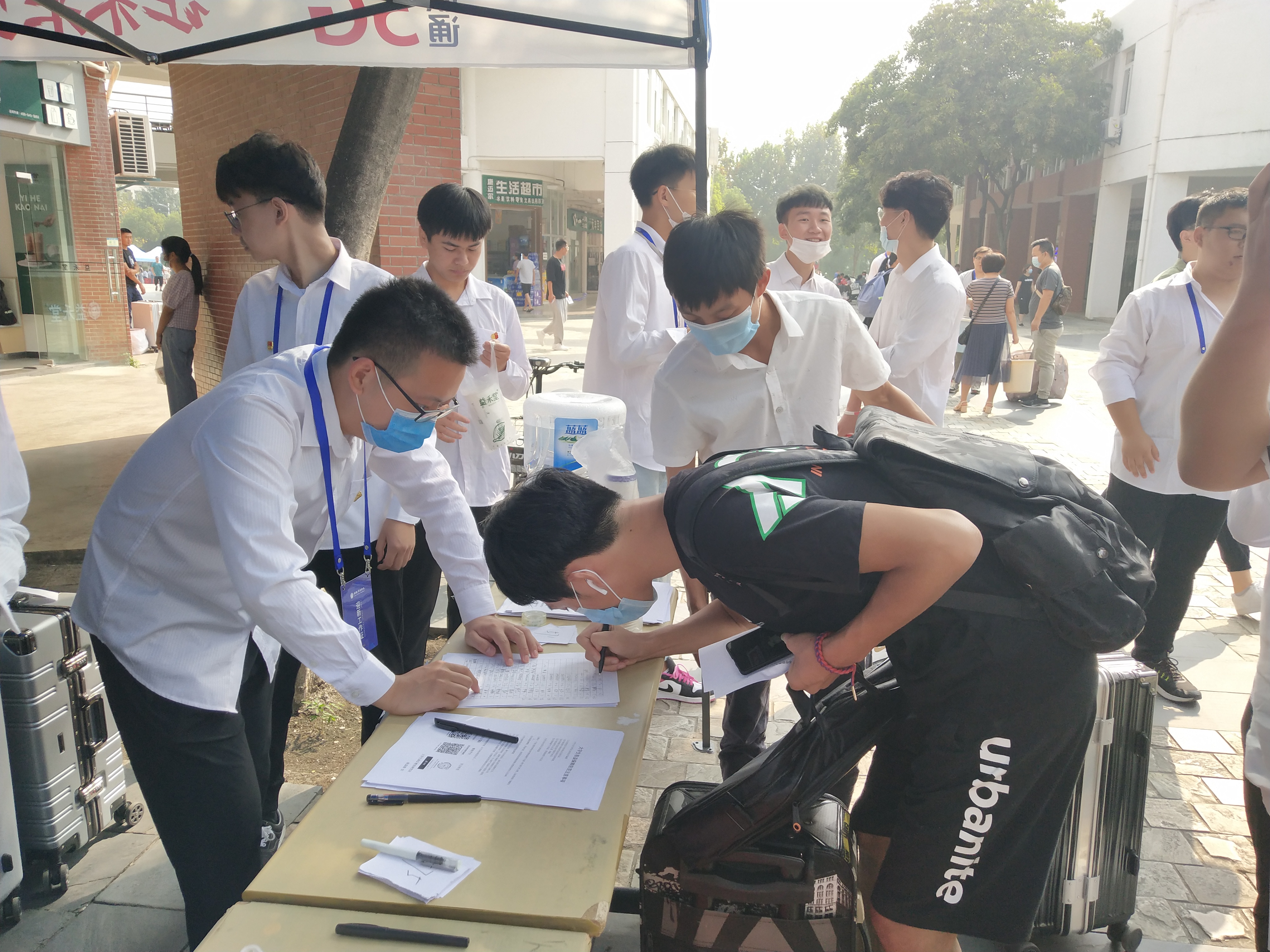 信息工程学院2020年迎新主题为“用爱迎新,E起精彩”,为了确保迎新各项工作顺利进行,学院成立了2020级迎新工作领导小组,就如何用饱满的热情迎接新生和如何引导新生办理入学手续进行了统一的安排与规范,细化分工、责任到人,上有统筹、下有执行。
