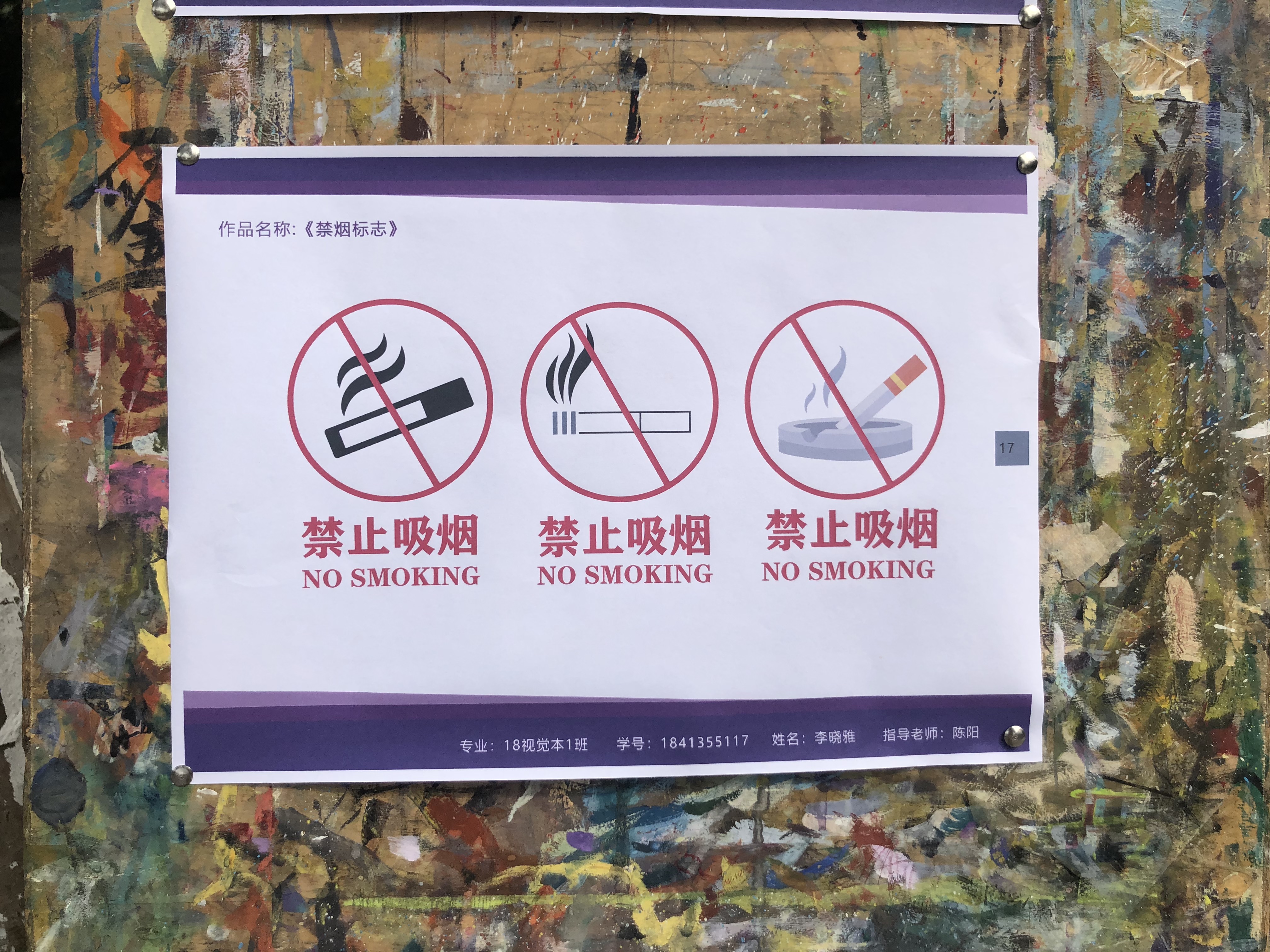 本网讯(通讯员 陈阳)为创建文明整洁的校园环境,进一步贯彻落实艺术学院“讲文明、树新风、提素养、促成长”大学生文明素质养成主题活动,近期,艺术学院举办禁烟标志设计展。