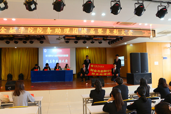 本网讯(通讯员:魏银银)金桂飘香,收获的季节亦是新生憧憬大学生活的时节。为加强财会与金融学院院务助理团学生队伍建设,各学生组织沟通交流,10月20日中午,财会与金融学院院务助理团在安徽新华学院小礼堂举办了第六届换届暨表彰大会。财会与金融学院副院长芮萍,院长助理张璐,行政秘书、指导老师魏银银,学管秘书彭洪磊,学院辅导员们,财会与金融学院院务助理团新老成员以及其他社团代表参加会议。