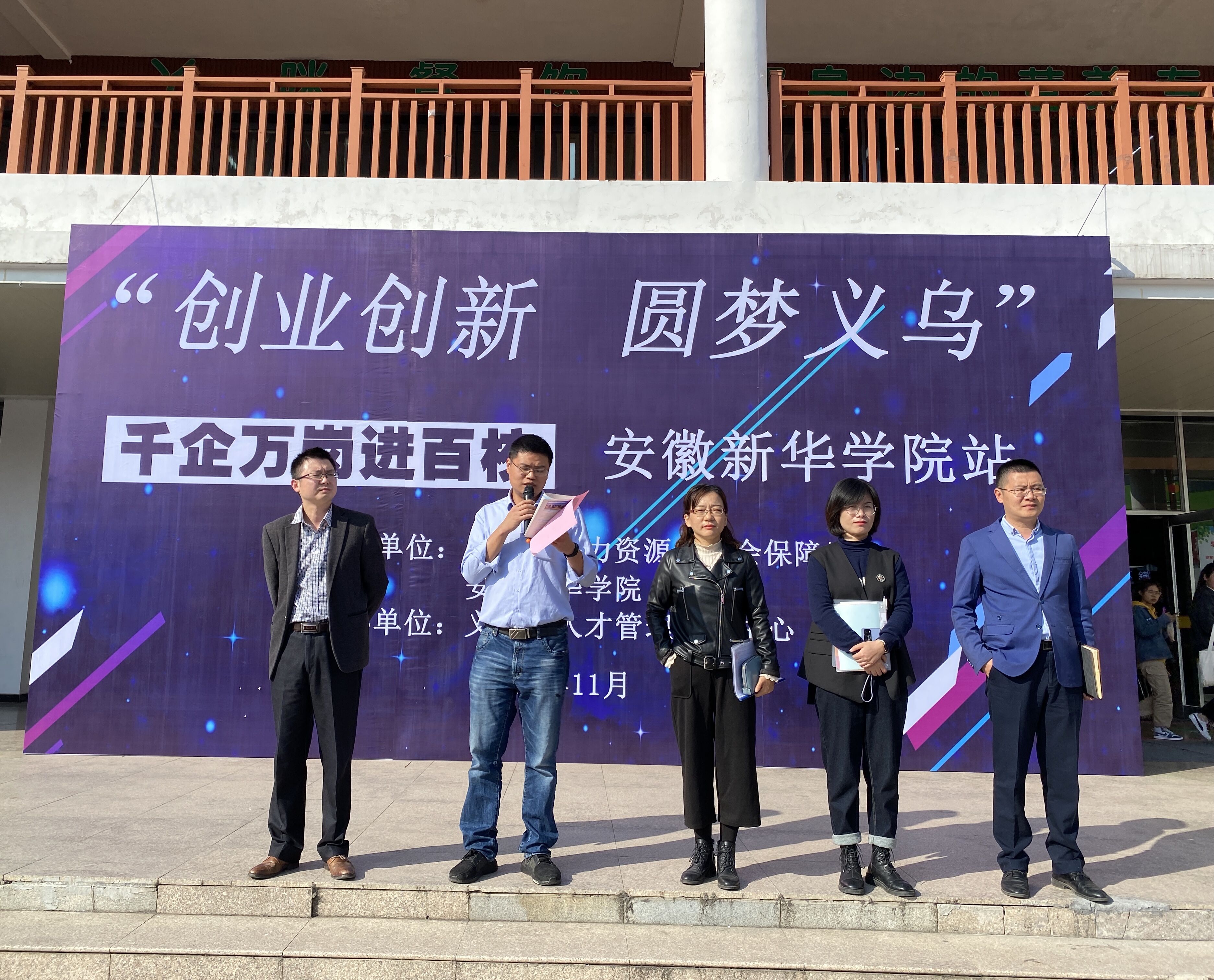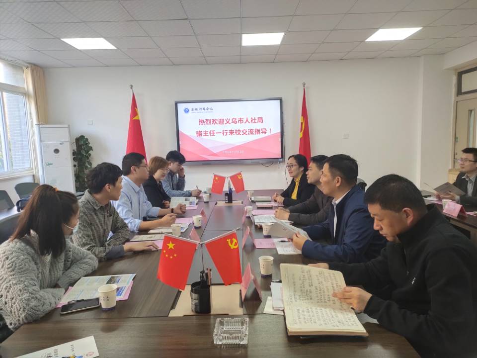 本网讯(通讯员:周刘湘 徐佩佩)为切实做好我校毕业生就业服务工作,积极搭建用人单位与毕业生线下面对面的交流平台。11月12日,义乌市人社局人才管理中心副主任骆旭伟率各招聘单位参加由我校举办的“创业创新 圆梦义乌”专场招聘会。安徽新华学院校长助理汪俊东、盛晓青;学生处处长王飞;中国东方教育创就业部副总经理赵群、经理陈永佳以及部分二级学院行政负责人接待了骆旭伟一行。