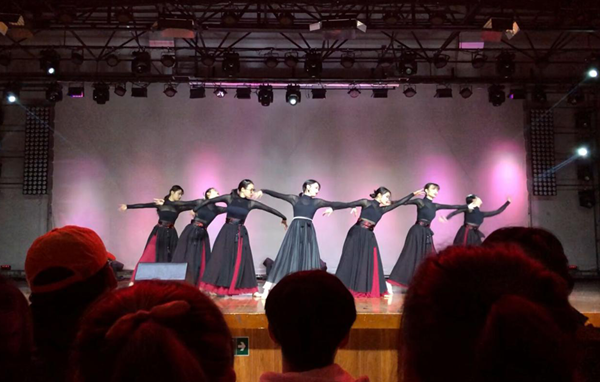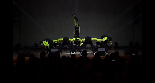 由啦啦操俱乐部带来的舞蹈x,整体配合度极高,众多高难度动作他们不在话下,台下的观众热情不减。