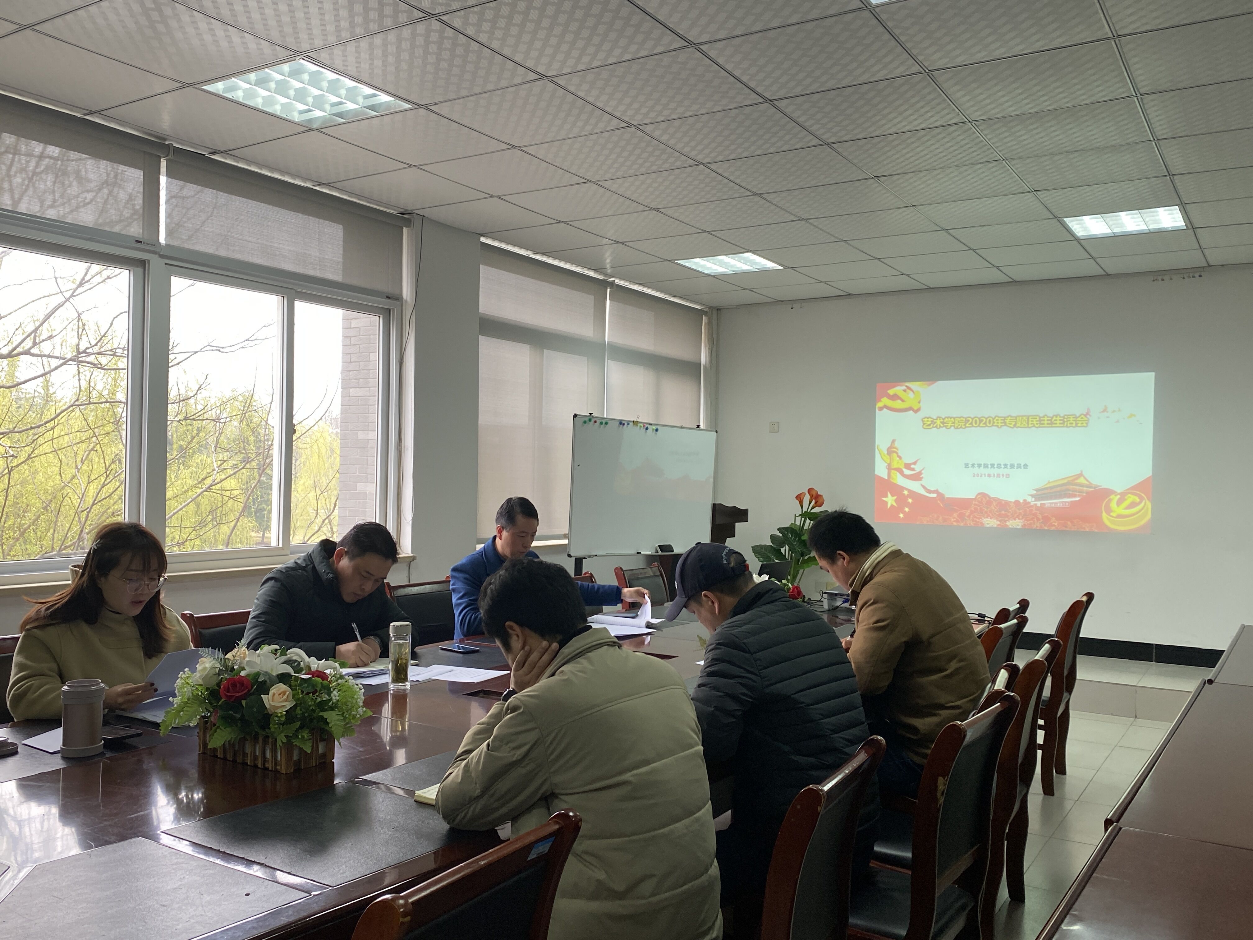 本网讯(通讯员:张大勇)根据《中共安徽省纪委机关 中共安徽省委组织部关于认真开好 2020 年度县以上党和国家机关党员领导干部民主生活会的通知》精神,按照安徽新华学院党委的部署要求,艺术学院党总支于2021年3月9日在艺术学院党员活动室召开了总支民主生活会。艺术学院党总支书记许存福及全体总支委员参加了会议,会议由艺术学院党总支副书记彭智主持。
