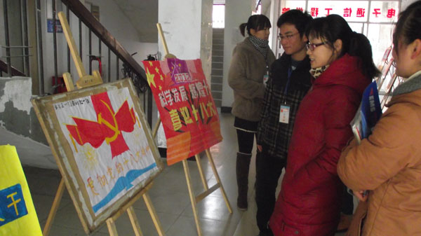 12月19日至21日,获奖作品在电子通信工程学院教学楼展出。该院副院长操宏华带领全体辅导员老师参观了所有获奖作品。操宏华对此次活动的意义给予了高度肯定,他认为当代大学生应当关注国家大事,主动加强对国家的方针政策的了解,这样才能树立坚定的信念和远大的理想,在当前社会各界掀起学习十八大精神高潮的时期,作为大学生,更应该以实际行动学习、宣传、贯彻党的十八大精神。参观的老师们也表示同学们通过海报的方式将自己学习十八大的成果展示出来是一种比较新颖的形式,在展出的海报中体现了当代大学生对党的十八大拥护,以及对十八大精神的不同侧面的理解。