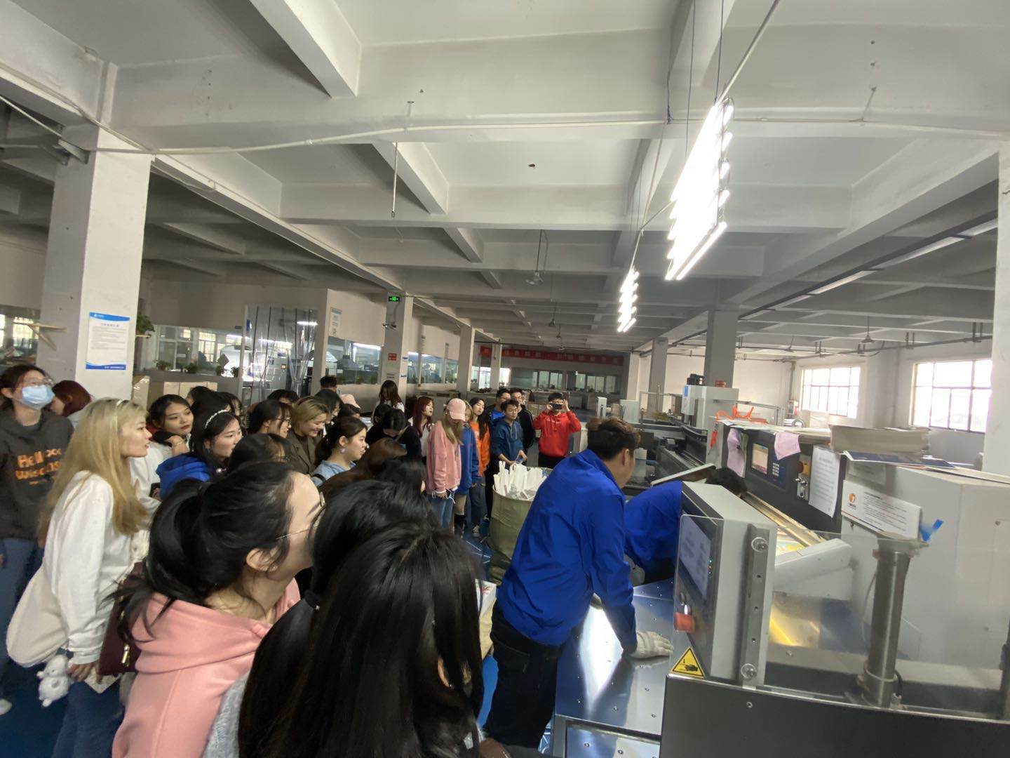 参观过程中,负责讲解的企业人员戴老师为同学们详细讲解了印刷流程和工艺原理,包括制版、四色印刷、覆膜、裁切、胶订、烫金等,还有一些所使用的先进机器。同学们大多是初次深入印厂,对各种印刷工艺及机器运作产生极大兴趣,认真记录并踊跃提问。通过此次的学习和参观,大家收获满满,纷纷表示只有不断学习专业知识,不断充实自己,才能在实践中充分地运用知识和经验。之后师生在公司门口合影留念,实现参观学习预期目标。