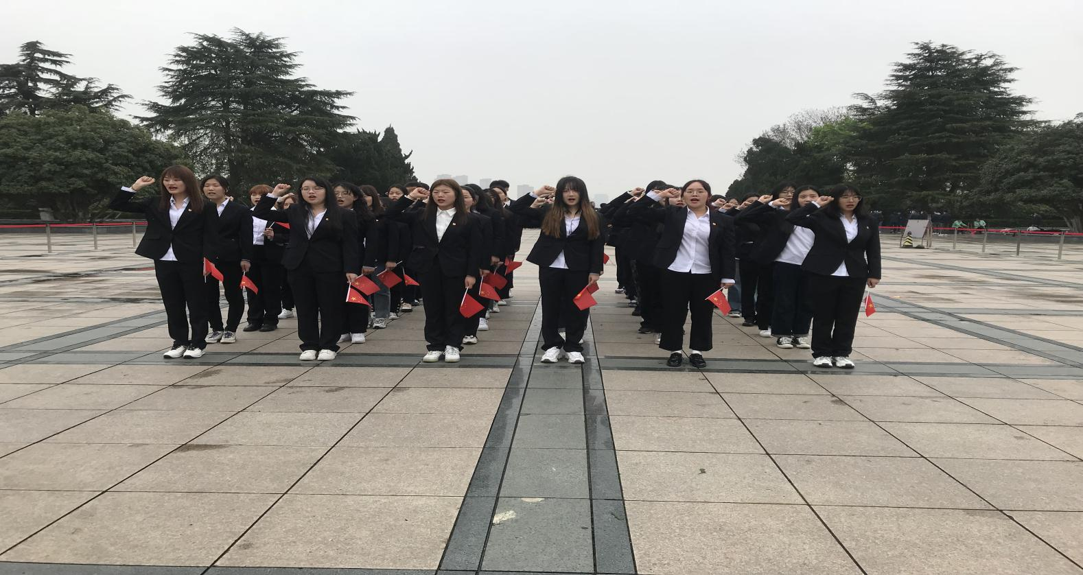 活动在辅导员许华娟的带领下,全体同学身穿校服佩戴团徽,步行前往蜀山烈士陵园。到达蜀山烈士陵园后,先行加入革命烈士事迹陈列馆进行参观,重温先烈革命历程,学习先烈优良作风。参观结束后,全体团员在烈士陵园广场进行悼念并进行庄严宣誓,向革命先烈表达敬意。誓词在纪念碑前久久回荡,坚定响亮的声音深切表达对革命先烈的敬佩,庄严的仪式使团员们受到了一次心灵的洗礼和融入血液的再教育。