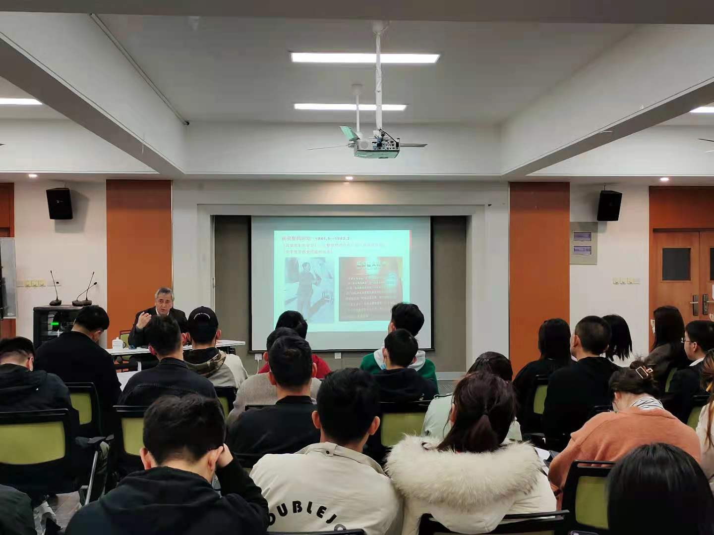 本网讯(通讯员:闫翠萍)为推动全院师生知史爱党、知史爱国,不忘初心、牢记使命,国际教育学院于4月7日开展了“党的建设一百年简纲”党史学习教育讲座。本次讲座由国际教育学院院长范东生主讲,国际教育学院、国际交流合作处全体师生参加,讲座由国际教育学院党支部书记黄喆主持。