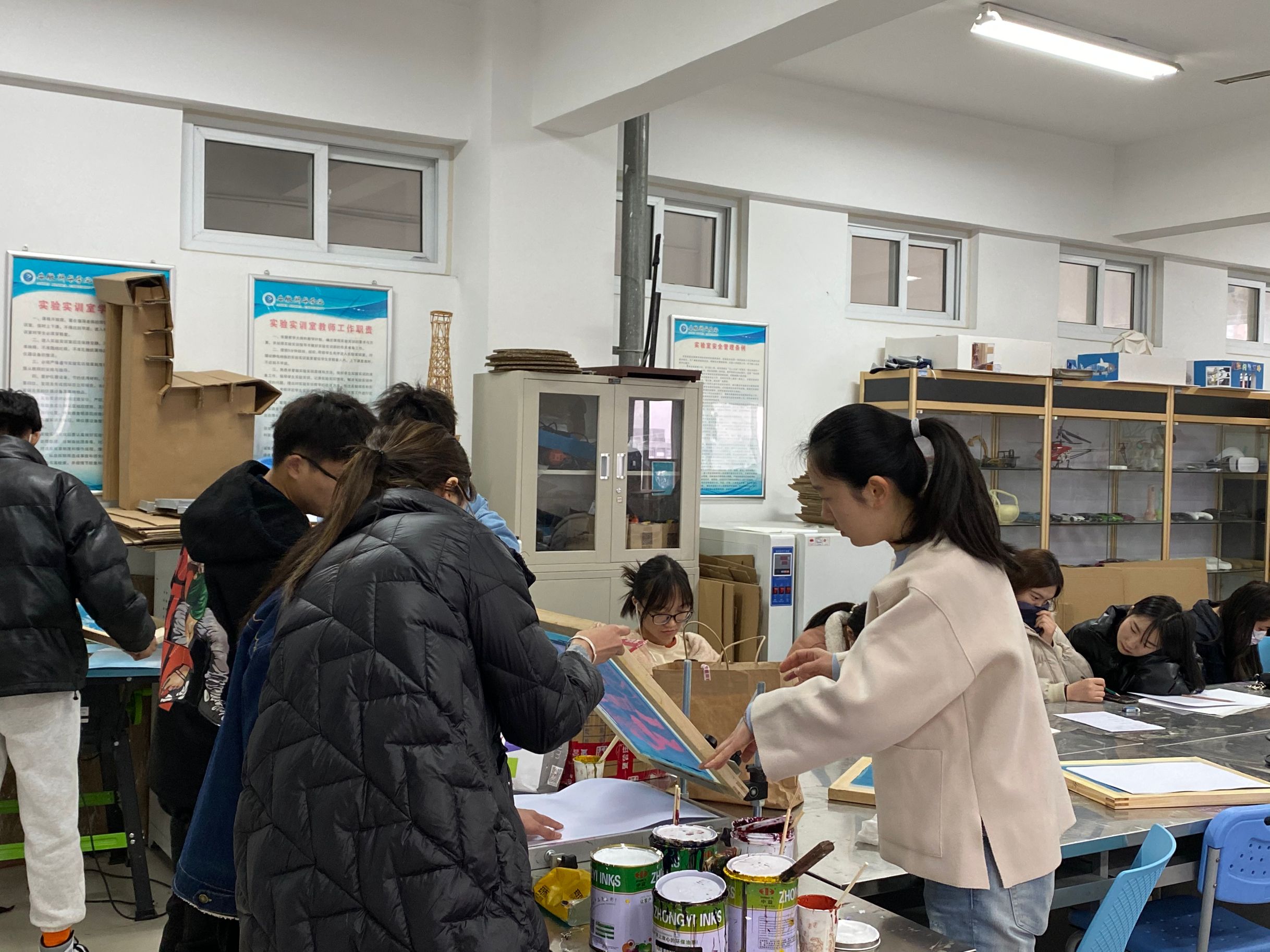 此次成果展共展出40余幅丝网印刷作品。从印框、油墨、感光胶、洗网水和脱模粉等材料的准备,到作品的完成经历了一道道工序。在印刷制作前,石岭老师带领大家学习了印刷工艺的基础知识,以及印刷的操作方法等。为了让同学们更直观的了解印刷制造工艺,带领大家前往一帆印务有限公司调研学习,充分掌握印刷工艺的相关技法。