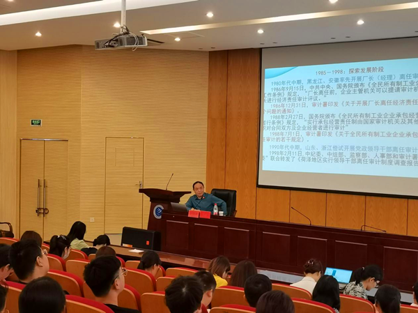 本网讯(通讯员:邓洁)为强化学生廉政和财政纪律自觉意识,进一步解放思想、更新审计理念,5月14日,我校财会与金融学院邀请安徽财经大学教授安广实在学术报告厅开展主题为“深化经济责任审计的几个问题探讨”的学术讲座,财会与金融学院院长助理邓洁、审计学教师队伍及2018级审计学1班、财务管理卓越班全体学生参加此次讲座。