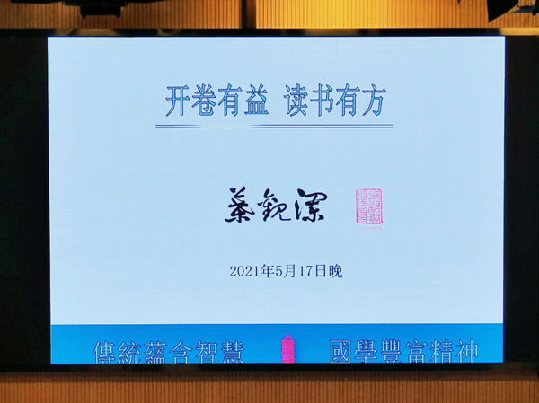 讲座伊始,叶观澜以《劝学诗》中的“书中自有黄金屋,书中自有颜如玉”引入读书的重要性,他提到读书能够认知世界,学到我们未知的东西,丰富自己的大脑。随后,叶观澜阐述读书四益:“发现自我,发展思维,发起智慧,发育精神”,并强调一个人的成长到成功都是在书中学到,在实践中验证从书中学来,理解“读书四益”对于当代大学生具有重要意义。最后,叶观澜通过放映《红楼梦》短片向同学们陈述“一部红楼,百样人生”的现实,并建议学生通过读书品尝人间百态,看世间万象,学会去理性思考感性世界。