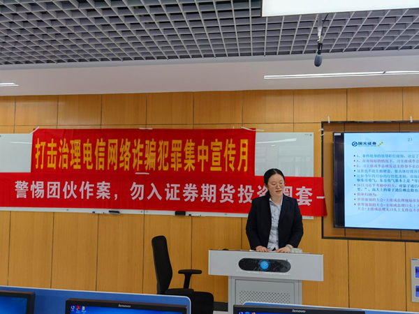 这是我校投资者教育共建基地携手国元证券股份有限公司开展的第四期“经管大讲坛”。此次金融防骗宣传活动的开展,填补大学生关于金融投资防骗常识的空白,切实增强在校大学生金融防骗的意识,有助于维护在校大学生的利益。