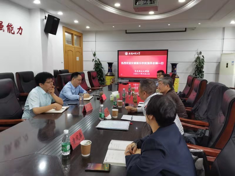 胡昭林对安徽师范大学马克思主义学院的热情接待表示衷心感谢,他从安徽新华学院办学历史、人才队伍建设等方面介绍相关情况,并诚挚邀请安徽师范大学马克思主义学院领导、老师到我校马克思主义学院进行调研考察、交流和指导工作,支持我校马克思主义学院提升课程建设、教学研究与改革、人才队伍建设等方面水平。何小刚就安徽新华学院马克思主义学院的思政课教学改革、课程建设、师资队伍建设等方面基本情况作介绍。