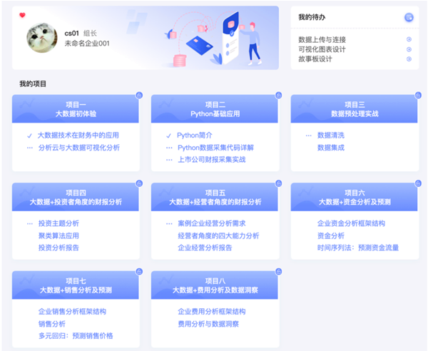 整个课程以财务人员大数据分析能力培养为教学贯穿主线,融合数据采集、数据清洗、智能分析、可视化呈现全流程大数据工具为一体;以企业竞争力分析与经营预判为业务场景,锻炼学生全局思考财务大数据应用流程,从商业问题确定——分析模型设计——数据采集清洗——数据挖掘建模——可视化呈现——解决方案报告流程,让学生在商业仿真业务场景中学习前沿信息技术工具、融汇财务专业理论知识应用,理解企业数字化经营管理体系,熟悉企业经营分析常用财务指标及数据,提前适应未来岗位环境及要求。