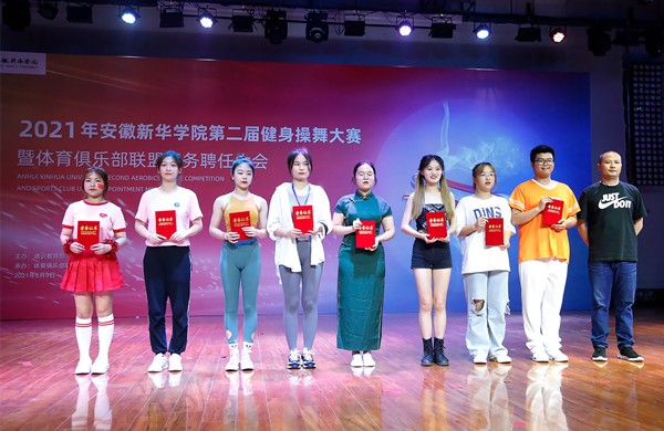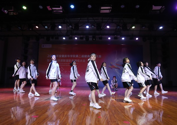 本网讯(通讯员:罗双祺 摄影:融媒体工作室/王振、李童、张佳怡)舞出婀娜多姿,跳出健康身材。6月9日,由通识教育部主办,体育俱乐部联盟承办的安徽新华学院第二届健身操舞大赛暨体育俱乐部联盟职务聘任大会顺利举办。通识教育部主任王士赵,团委副书记计羚,通识教育部副主任何亚梅、体育教研室副主任朱亚玲、相关俱乐部指导教师和体育俱乐部联盟全体成员出席本次活动。