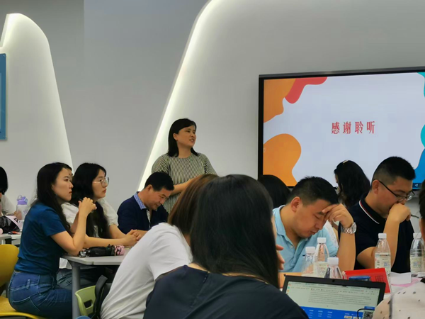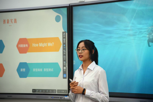 接着,校企双方师资代表进行双创课程研讨会,就双创课程的成果、现存问题及未来计划作交流。校方教师蒋毓萍提出,双师深度研讨、新道云平台助力、学生素养良好是实现共建课程顺利开展的重要因素,给课程改革留下良好经验。企方教师黄锐十分肯定共建班学生的综合素质能力,他表示,共建课程通过课程改革为学生带来更多专业能力和综合素养的培养,但双创课改仍需继续努力。