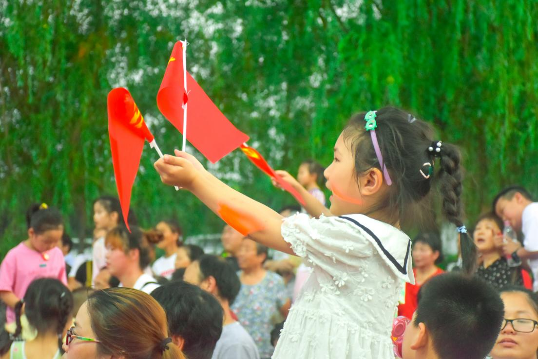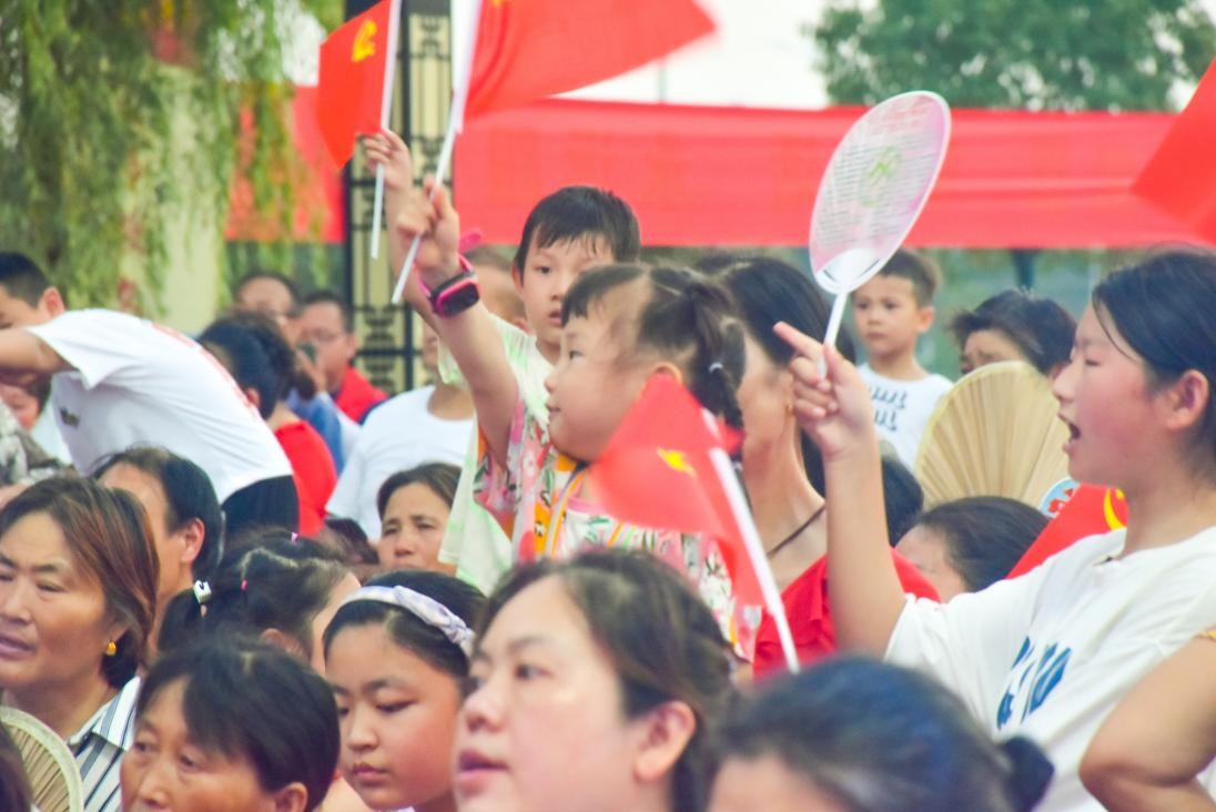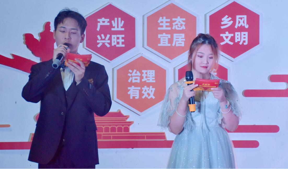 发言结束后,安徽新华学院青新实践团和舒城融媒体中心为群众带来了一系列的表演节目。活力四射的《我们都是追梦人》啦啦操、机智逗趣的小品《我是好人》都引起了台下热烈的掌声。其中,青新实践团全体成员演唱的《唱支山歌给党听》,一字一句展现对党和国家的爱,一曲一调表达对乡村振兴的美好期望。在起承转合的音调中,流露出“把党比母亲”的真挚情感。随后,李章程带领全体党员重温入党誓词。在方茹的独舞《弦子》和青莲朵朵舞团的《神州舞起来》中晚会正式拉下帷幕。