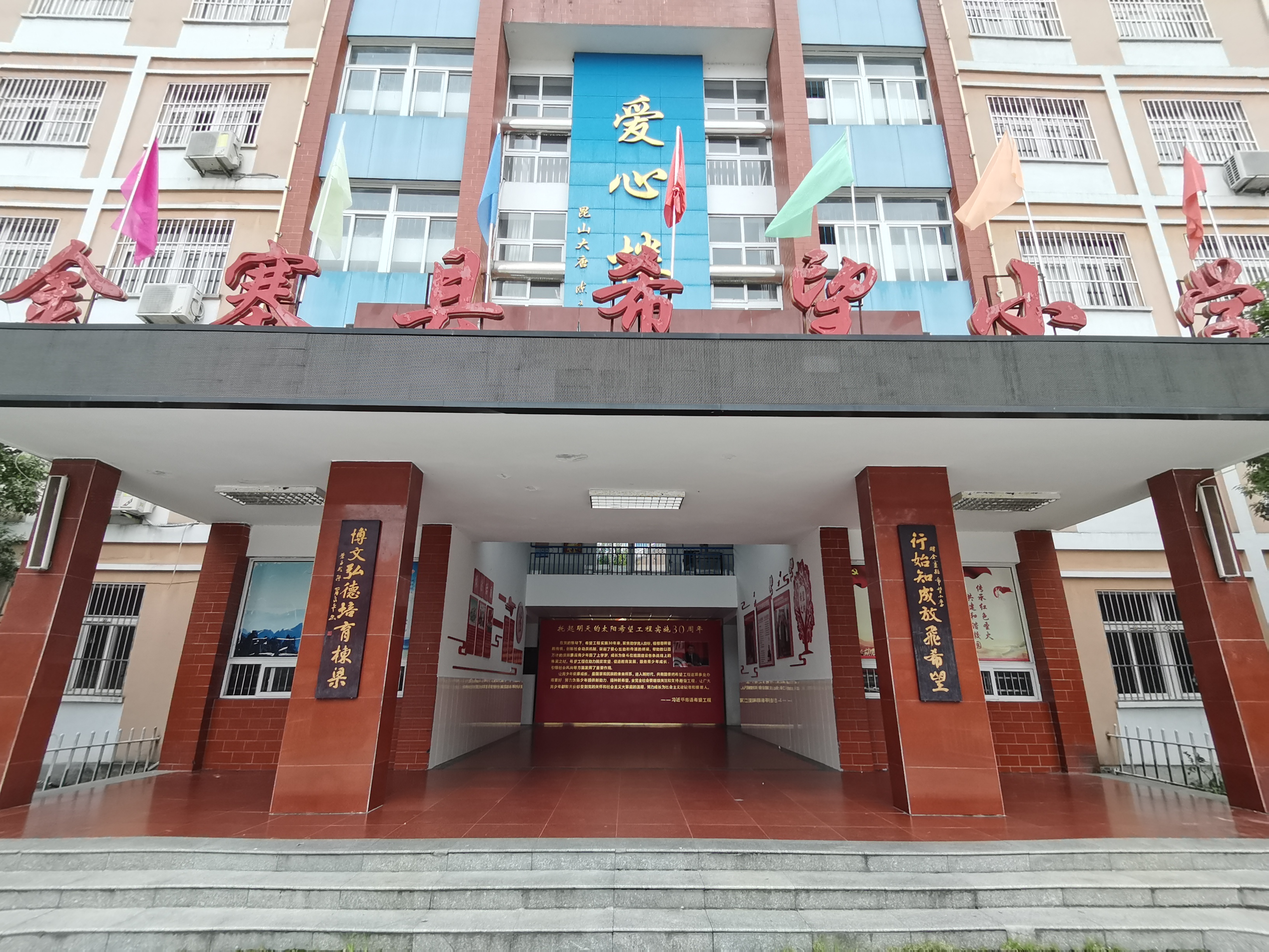 上午8时,团队一行踏上前往“希望小学”的征程,盘山公路九曲十八弯,车辆穿梭在山河间,掠过座座村庄。10时许,抵达校园前,高高的教学楼矗立在大门内中央处,庄严而肃穆,一簇“希望”之火于一行人员心中燃烧。按照既定工作方案,对于校园内进行调研,并录制宣传与讲解视频,用最真实的视频记录“希望工程”的发展历程,用最朴素的图片描绘“希望工程”在今日的辉煌成果,用最简短的言语道出“希望工程”的历史真谛。