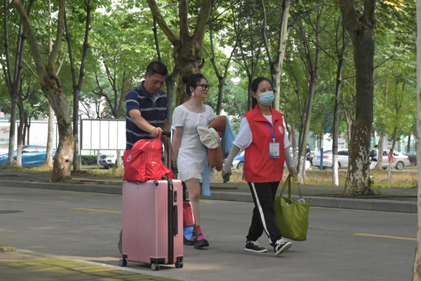 在新生进入校园后,由志愿者们协助搬运行李并领入校园,志愿者们积极投入到为新生们搬运行李的服务中,忙碌的背影成为了校园迎新队伍中一道亮丽的风景线。