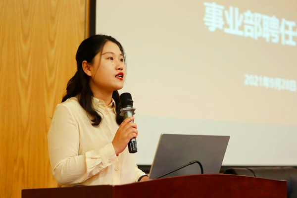 首先,濮明月宣读了《关于聘任张文豪等同学为第三届云财务产业学院事业部成员的决定》,校企双方领导为2021级财务管理事业部的24名成员颁发聘书。