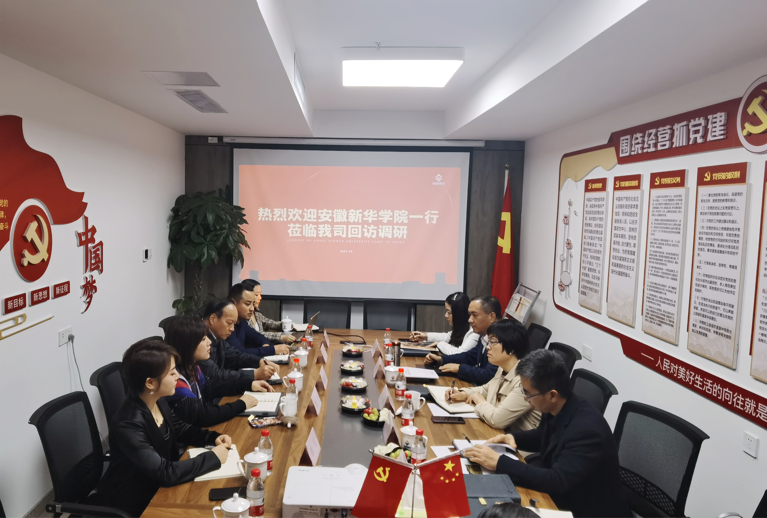 安徽拓盛建设工程有限公司董事长魏红携公司相关负责人热情接待了学校走访一行。座谈会开始,公司设计部总监胡梦辰汇报了公司的企业文化、基本情况及精品项目。接着,邵玲向大家介绍了安徽新华学院的发展历程及近年来取得的办学成效,并对魏红校友取得的成绩表示高度评价与肯定。
