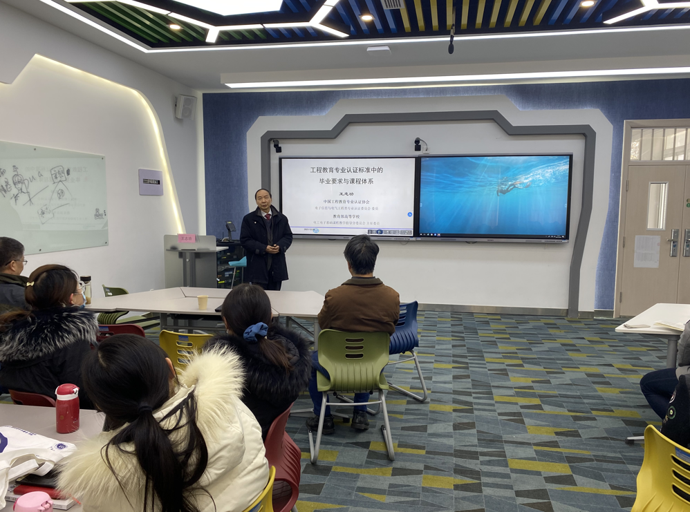 本网讯 (通讯员:陈璟 白燕奇)12月28日,我校组织召开了专业认证培训会,特邀中国工程教育专业认证协会电子信息与电气工程类专业认证委员会委员、教育部高等学校电工电子基础课程教学指导分委员会主任委员王志功教授作指导报告。质量监控与评估处全体人员、电子工程学院/智能制造学院、大数据与人工智能学院、城市建设学院的教学负责人、系主任、相关专业负责人、骨干教师以及学生代表参加了会议。会议由电子工程学院/智能制造学院院长李晓辉主持。