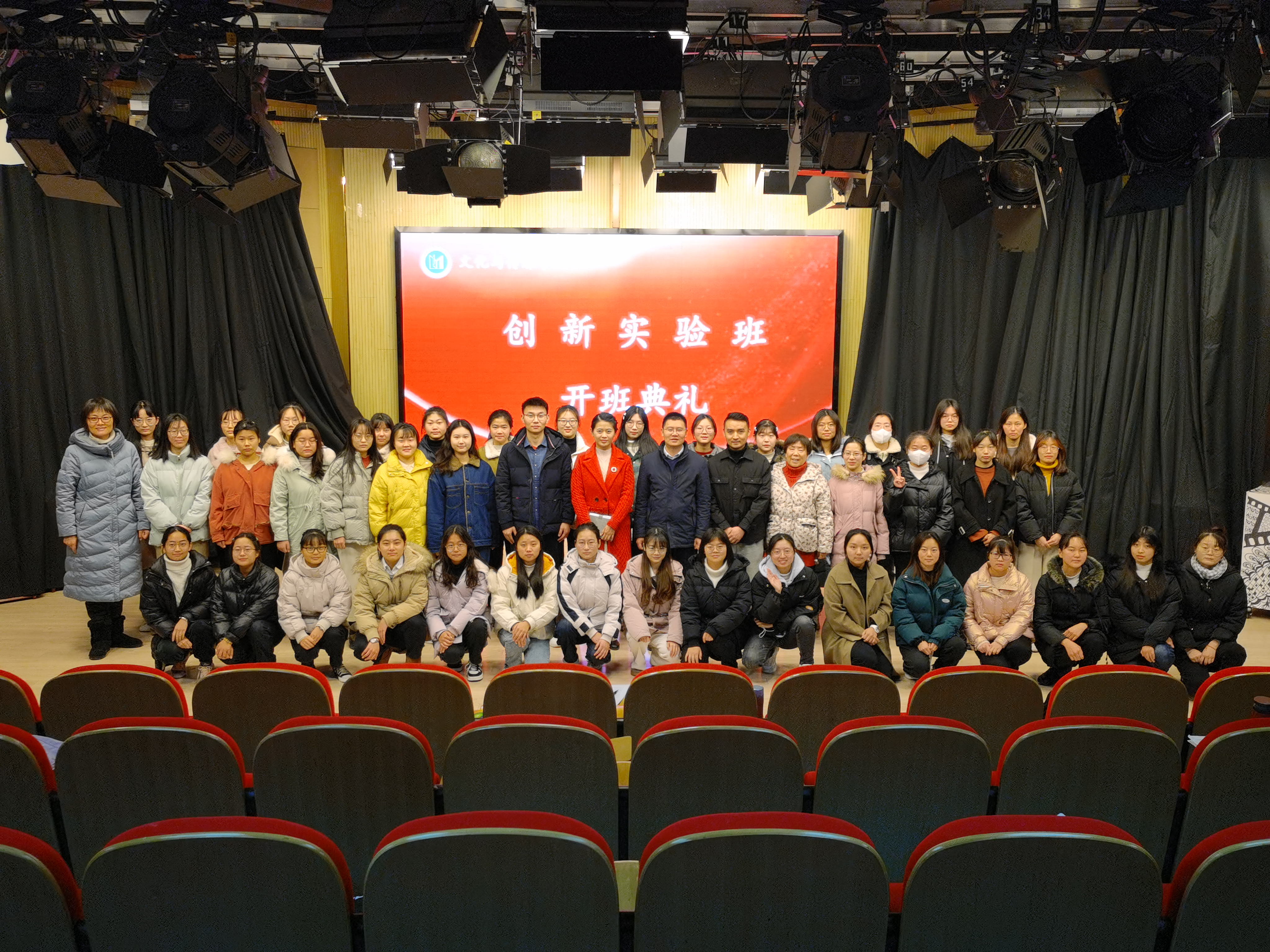本网讯(通讯员:王博、魏亚玲)1月4日,文化与传媒学院于新闻演播厅举办创新实验班开班典礼,出席本次典礼的有文化与传媒学院副院长(主持)洪玉、文化与传媒学院行政副院长罗振林、文化与传媒学院中文系教授车晓勤、王群芳,创新实验班班主任王博以及创新实验班全体学生,郑帅为本次活动的主持人。