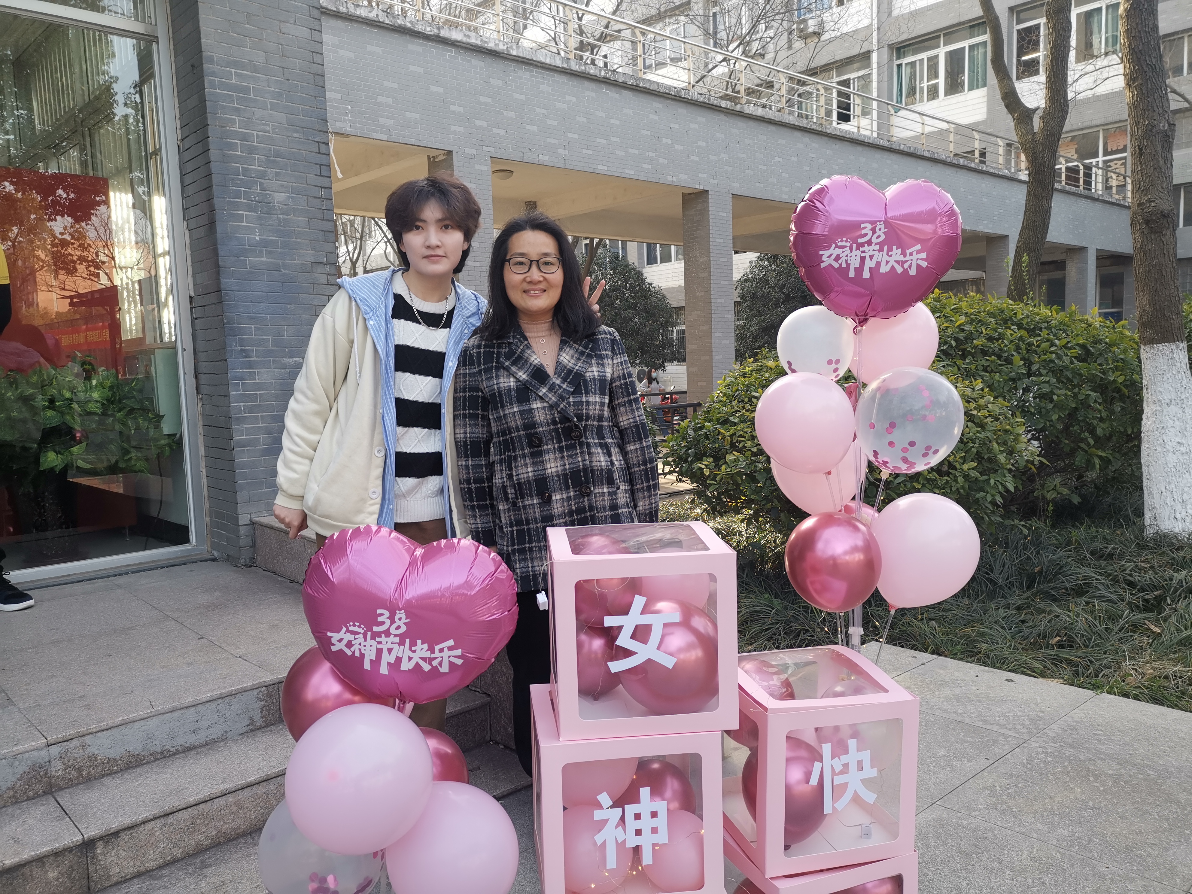 3月8日上午7点,学院门口装扮一新,随着老师们陆续到校,学生代表为每位女教师送上节日祝福,表达深深敬意的同时为老师们拍照留念。