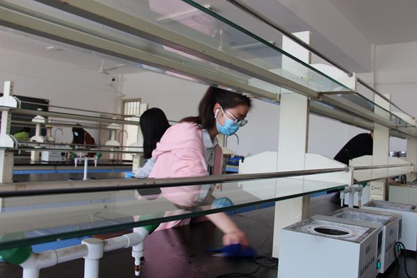 学生们在负责老师带领指导下,认真做好实验器材的保养、维修,清洁如溶出度测定仪、药筛、药物粉碎机等。学生们认真擦拭玻璃,摆放实验室中药品,整理归位实验仪器,将实验台面清洁如新。最后同学们将电炉放置及门窗的关闭进行了一一检查。