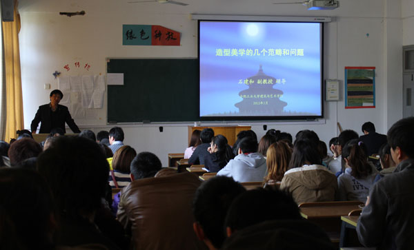 本网讯(学生记者 陶文)4月10日下午,合肥工业大学石建和副教授应邀为我校动漫学院的师生们带来了一场题为“造型美学的几个范畴和问题”的精彩讲座,动漫学院百余名师生听取了讲座。