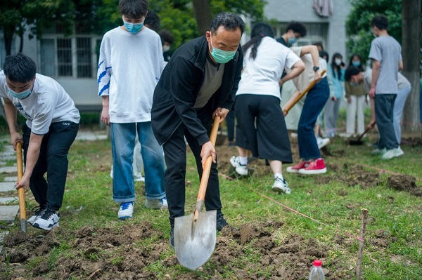 本网讯(通讯员:刘晓蓉、何婷摄影:李中宝)为了进一步提高同学们的劳动意识,锻炼同学们的动手能力,商学院于4月20日14:30在教五、教六中庭空间开展劳动教育实践基地揭牌仪式暨“‘疫’起劳动,花满华园”系列活动。我校劳动教育研究中心主任朱平,商学院党总支书记、执行院长翟荣兵,商学院党总支副书记、院长助理汪明天,学生处主管黄梦,商学院劳动实践基地指导专家方传奎,商学院团总支书记、学管秘书刘晓蓉以及商学院辅导员和学生代表参加了本次活动。