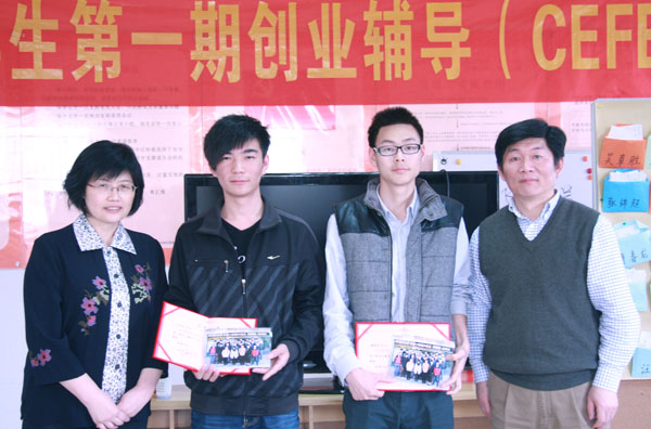 本网讯(通讯员 刘伟)安徽省大学生创新创业促进会和安徽省经济信息委员会4月8日至12日在合肥国家大学科技园联合举办的首期大学生创新创业促进会首期赛飞(CEFE)培训班。经过择优推荐,我校共有四名师生参加此次赛飞(CEFE)创业培训班并顺利结业,我校在培训班中录取人数居全省第二位。