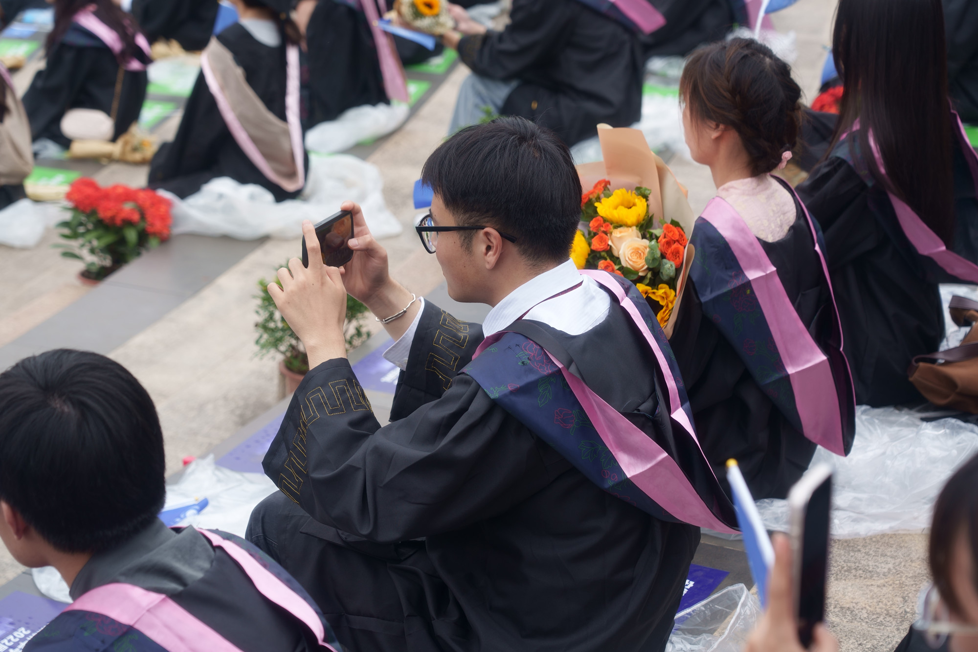 为更好地增强毕业生的归属感和认同感,文化与传媒学院参与学校在下沉广场举办的毕业典礼。学院师生共同走过秋实路,一句祝福承载着学院的期盼;一句“我们毕业啦!”承载着毕业生的激动与不舍。细雨漾漾,但在场师生热情不减。