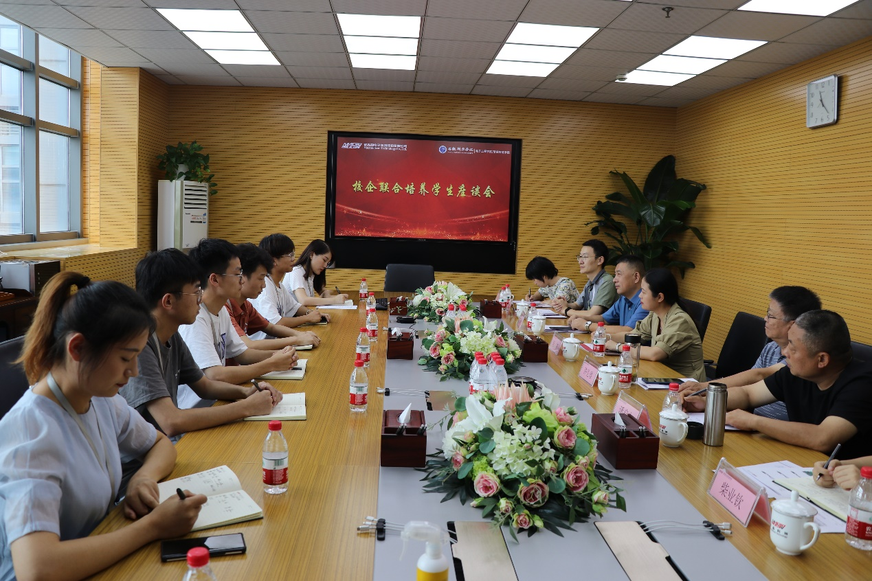 最后,电子工程学院/智能制造学院教师参观宏晶微电子科技股份有限公司研发中心和实验室,并与我校实习就业的学生开展了座谈会。参加座谈会的学生有已毕业的代表高召、刘文文,正在参加实习的学生代表。座谈会就实习岗位、心得、发展、人才培养方案、课程设置以及对学院的建议等等内容进行充分讨论。高召、刘文文等感谢学校、学院老师的培养和教学,使得他们具有扎实的理论基础。参加座谈会的同学一致表示,感谢学院提供参加学科竞赛的机会和历练,希望在企业继续发挥我们优秀学子务实的品德。
