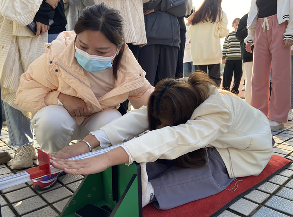 本届体测运动会分男子组和女子组两个组别,上午进行男子组比赛,下午进行女子组比赛。比赛共设50米短跑、肺活量、立定跳远、坐位体前屈、女子800米跑、男子1000米跑、女子一分钟仰卧起坐、男子引体向上八个项目,由通识教育部体育教师担任裁判,田径俱乐部学生担任助理裁判,在他们精心的组织和安排下,比赛秩序井然,参赛学生按照体能标准逐项测试,顺利地完成了各项测试任务,体测运动会圆满结束。